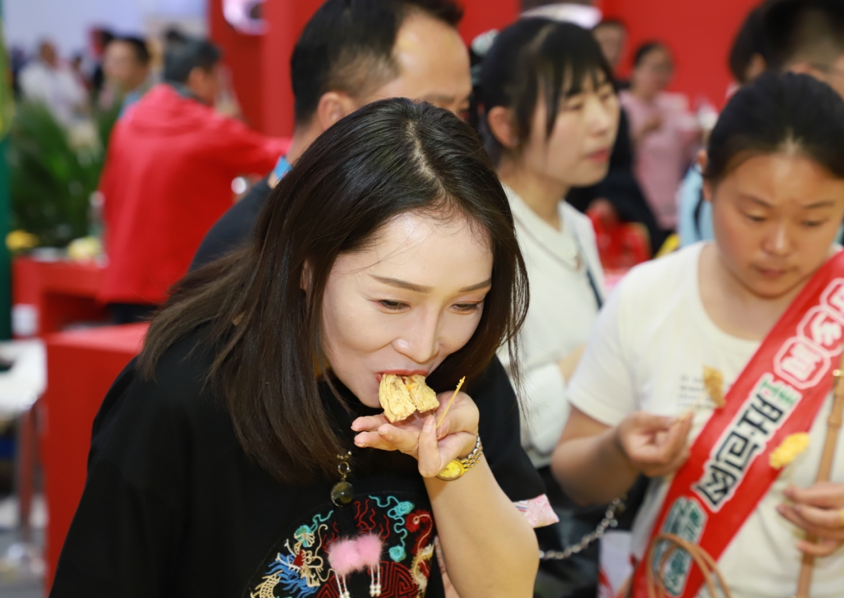 展位前人潮涌動,工作人員熱情接待每一位參觀者,積極邀請每一位參觀試吃菜品,詳細講解每個產品。