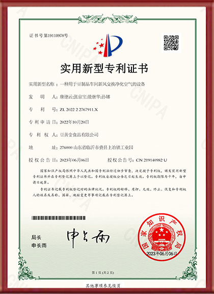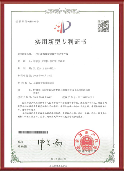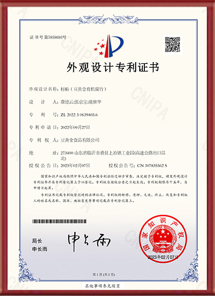 豆黃金腐竹榮獲中國“綠色食品”認證,并連續五年榮獲“中國綠色食品博覽會金獎”。公司被評為